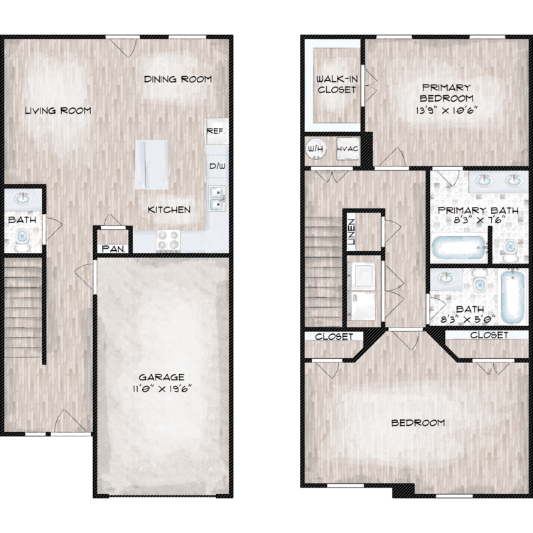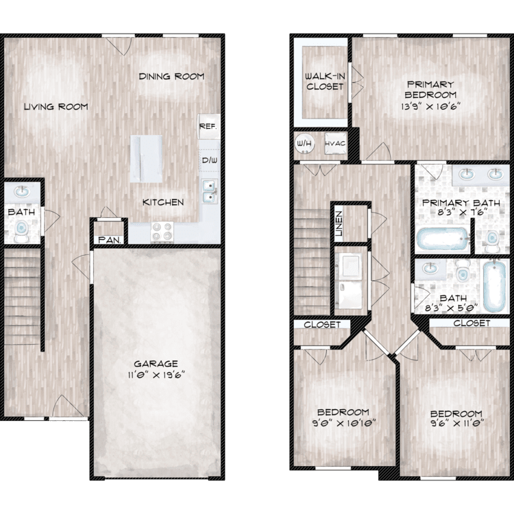 Explore Ace Townhomes, where expansive two and three-bedroom townhomes for rent deliver a modern approach to everyday living. All-electric kitchens showcase a full suite of contemporary appliances and a breakfast bar ideal for hosting. Balconies or patios, walk-in closets, ceiling fans, and central air and heating enhance both comfort and style, creating spaces that feel open, airy, and enjoyable year-round. In-home washers and dryers, paired with the convenience of an attached garage, simplify everyday routines.